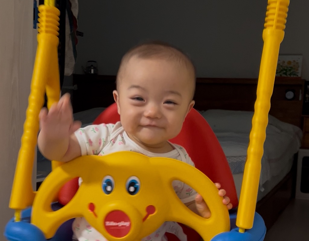 돌이 채 안 된 아기라면 보통 새로운 놀이기구에 낯설어하거나 무서워할 수 있죠.